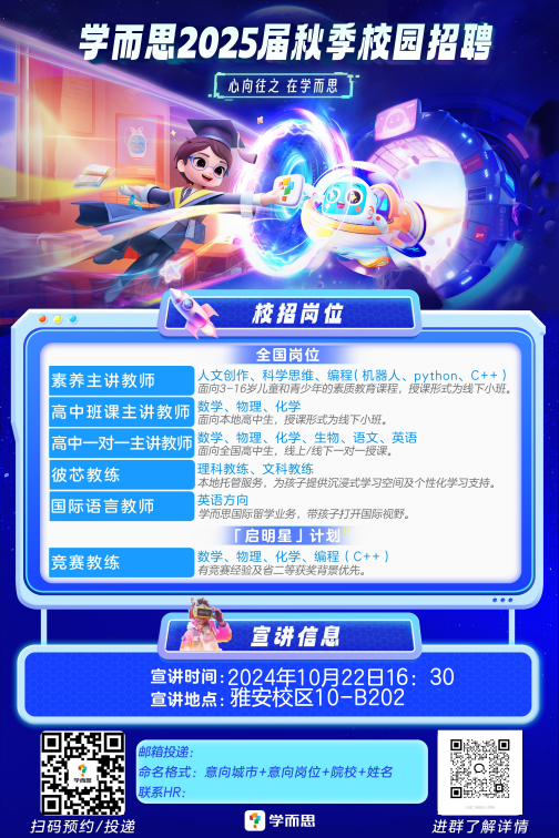 热招岗位:素养教师(科学思维),彼芯理科教练,国际语言教师……多业务线可选,更多岗位详见投递主页