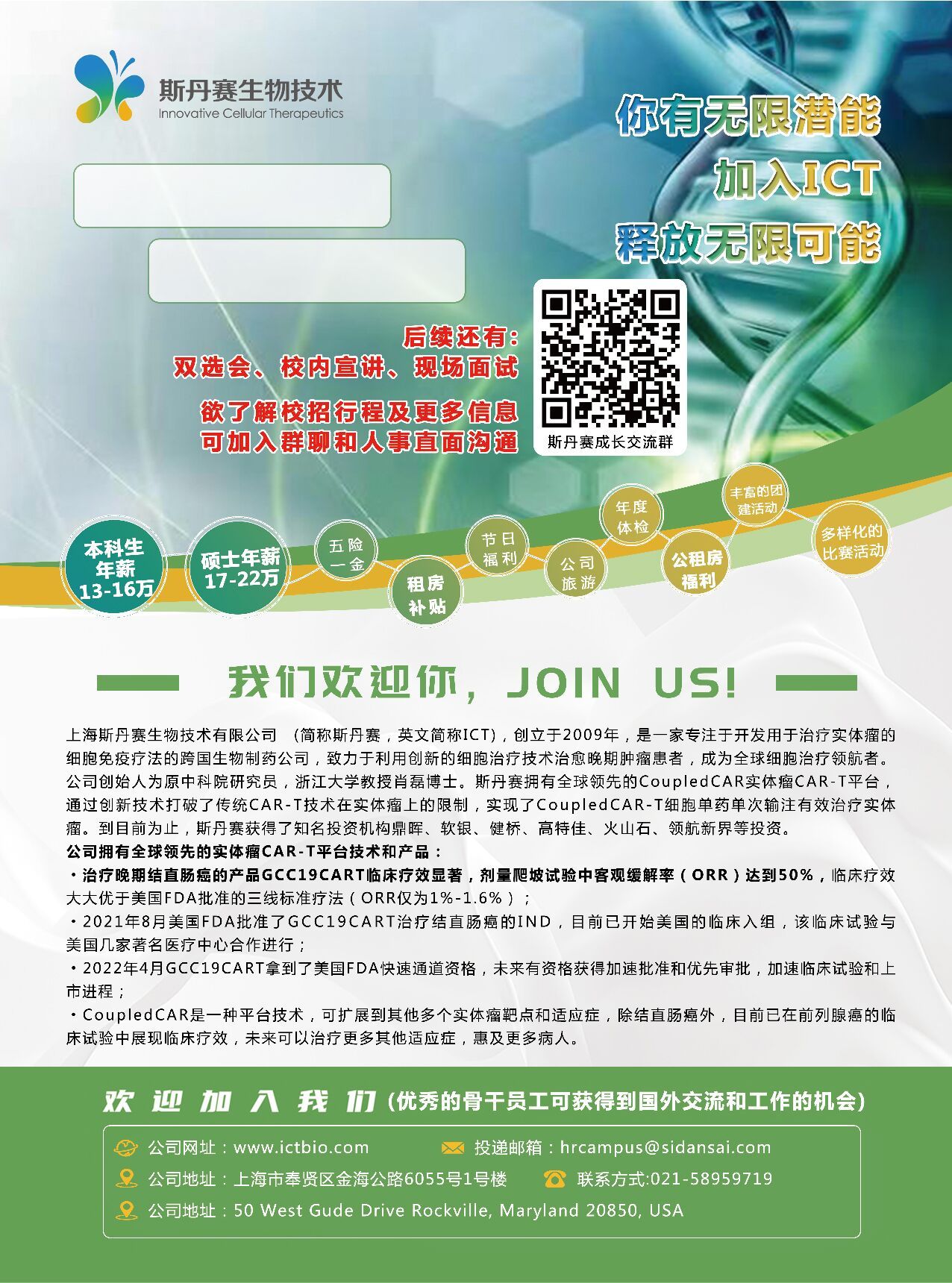 【薪资福利】本科生年薪13-16万、硕士年薪17-22万