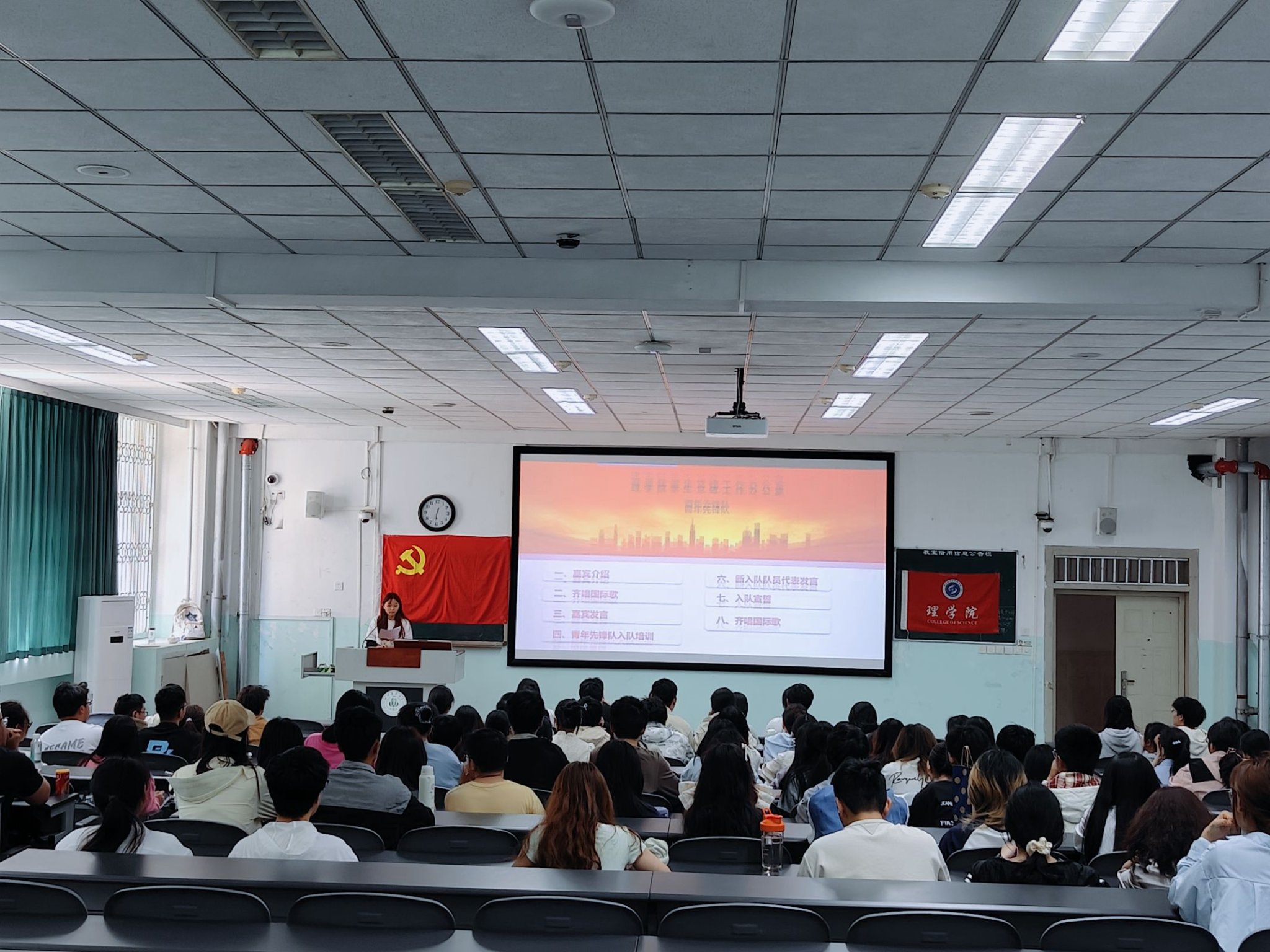4月15日中午,学院在10-A101举行2025年春季学期确定的入党积极分子加入青年先锋队入队仪式暨培训会。学院党委书记胡永波,各专业员工党支部书记、党员代表、员工党建工作办公室全体成员参加仪式。员工党建办公室青年先锋队裴超悦主持仪式。