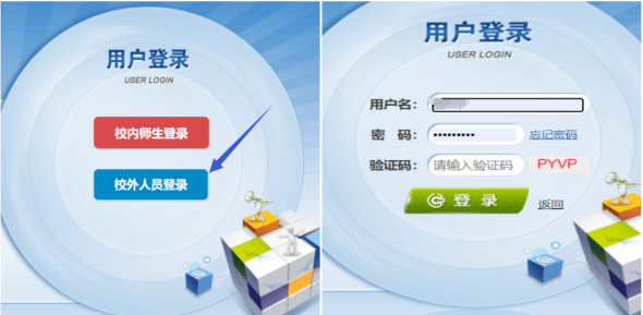 用户名:26+考研报名号(学校初试成绩查询中可查报名号<点击查询>,默认密码:身份证号码后6位。点击校外人员登录)