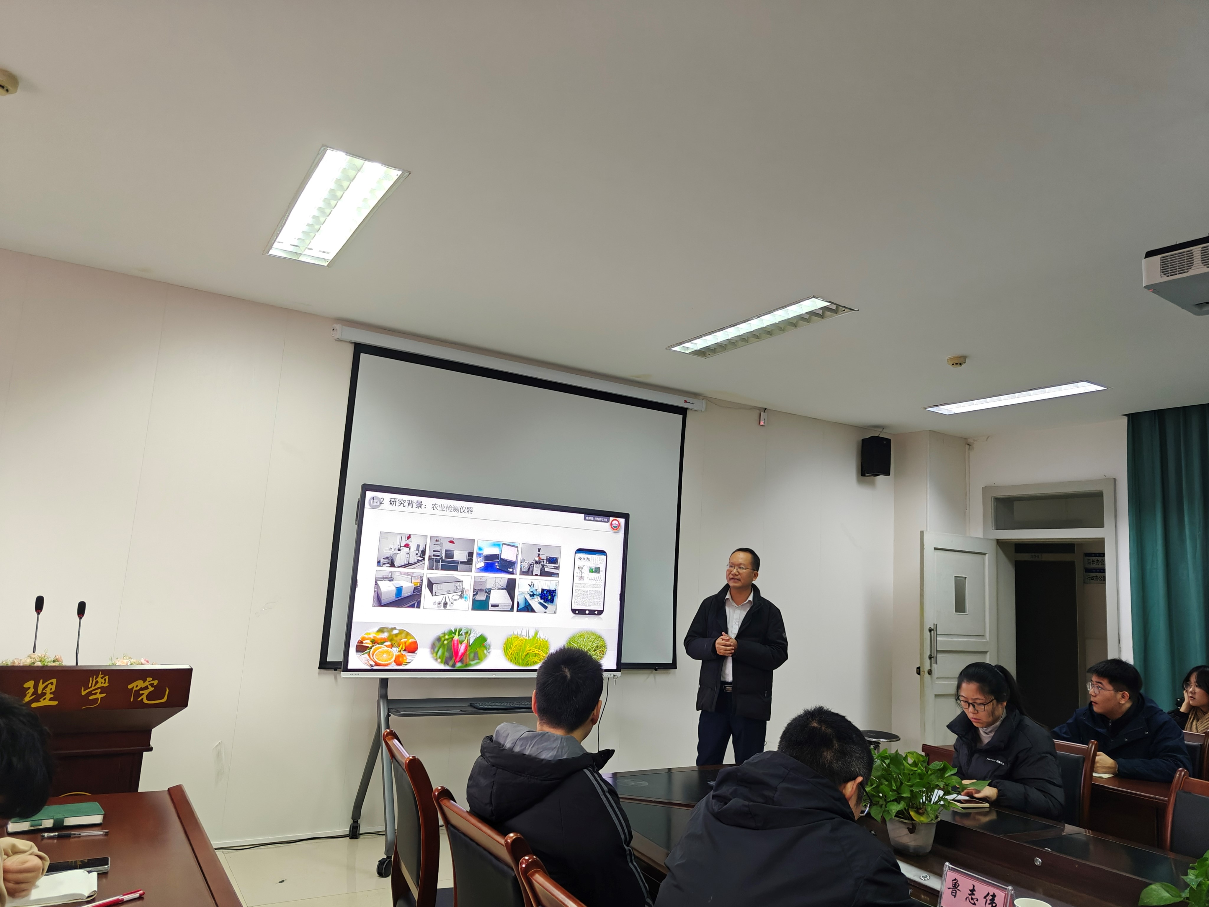 1124日上午,湖南农业大学化学与材料科学学院苏招红副教授做客“理学讲堂(第24期)”,作了题为《基于智能手机的几种植物活性分子的电化学传感研究》的学术报告。k1体育副经理、纪委书记鲁志伟,实验中心主任孙萌萌副教授,部分研究生及化学拔尖创新班同学参加了此次报告会,报告会由孙萌萌主持。